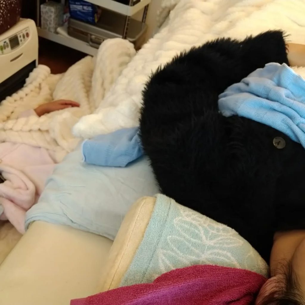 ふわふわ簡易的ベッドをセッティング。